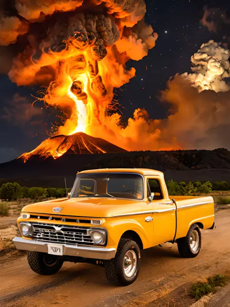 Helper: see the examples prompts, but in general you can vary the color of the body and make the truck lifted with some fiddling. For example: f0rd66pu, truck, blue body, (lifted), ...