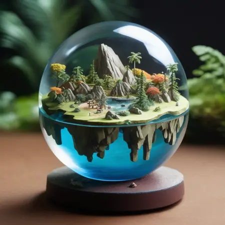 水晶球中的岛屿,微缩景观,位于岩石上,等距风格,风景 lora:isometric-v1:1