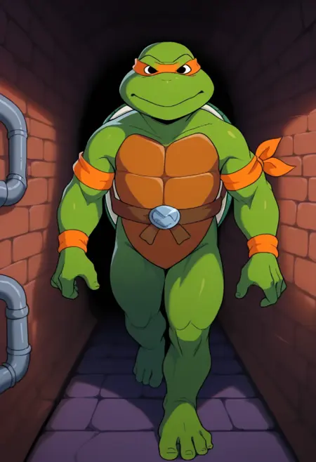 请注意,这仅仅是一种风格,而Flux对忍者神龟这类角色的识别能力不如Illustrious版本,因此不要对此抱有太高期望。但如果你在寻找一种复古卡通风格,这个版本表现相当不错。