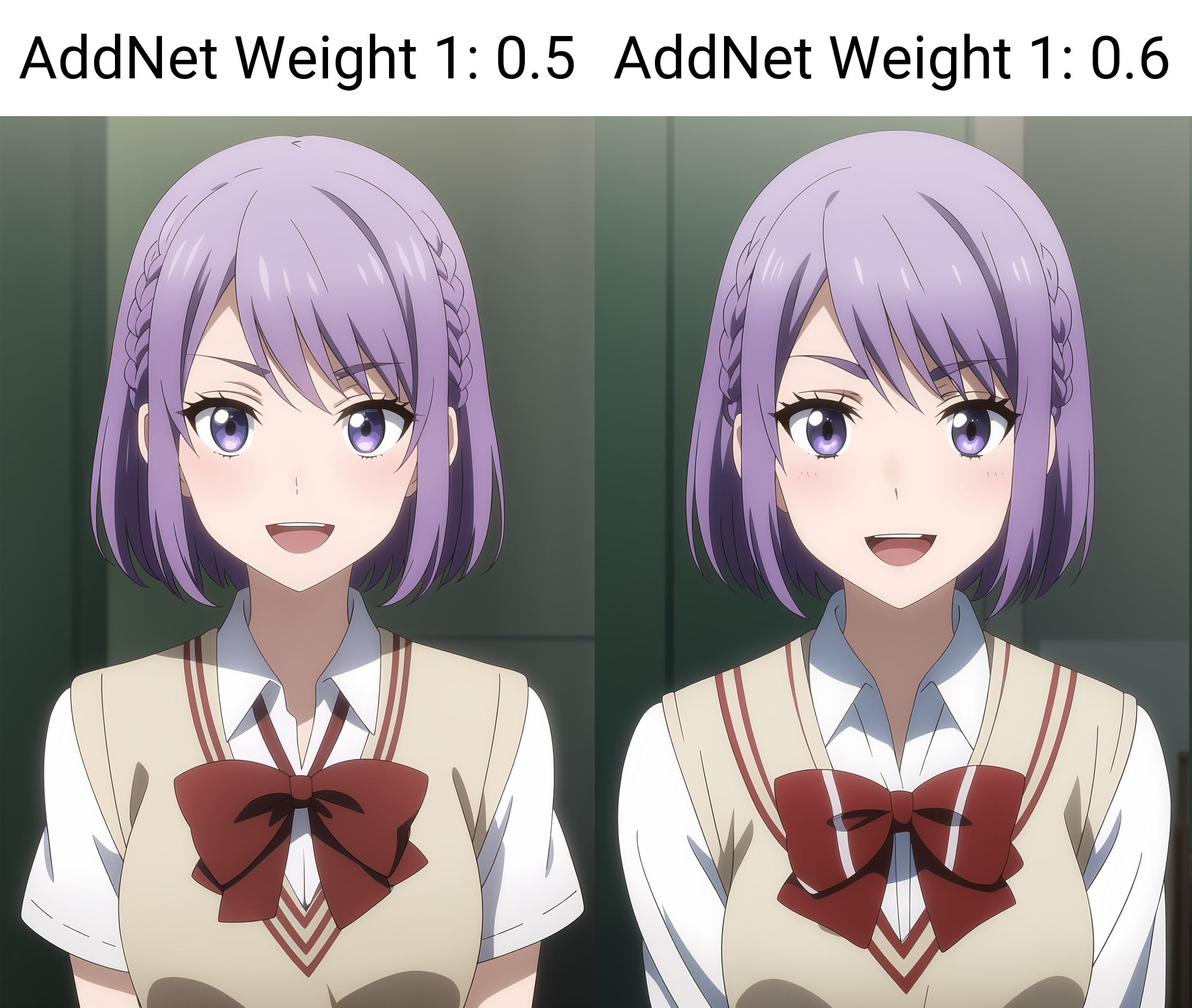 short hair, braid, purple hair, purple eyes