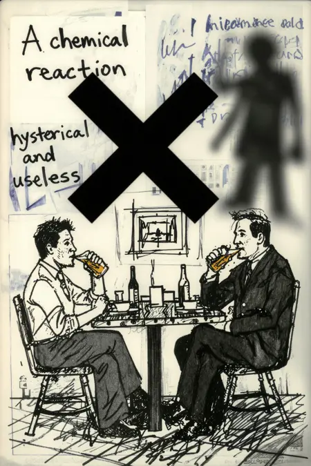 拼贴、蓝色方块上的粗黑X、超现实、剪影、线框、草图、符号、幽灵般、文字、蓝色调、手写短语、混乱文字、发光剪影、幽灵剪影、幽灵人物、高速公路、复古风格、条形图、图表、小文字、粗体文字、消费主义、去饱和、粗糙纹理、空灵人物、"Lost Child"、示意图风格插画、火柴人、涂鸦、城市景观、梦幻、梦幻般、梦境、半透明人物、分层、文字碎片、抽象标记、飞机、图表、混乱、技术图表、白色背景、剪影、神秘警告标签、霓虹勾边、阴森、梦境、混乱、潦草、文字碎片