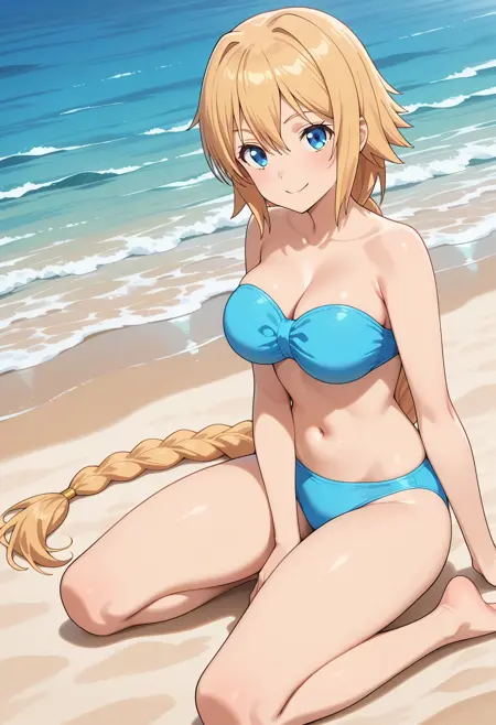 dancho_arthur, dancho_school, blonde hair, very long hair, single braid, long braid, blue eyes, breasts,