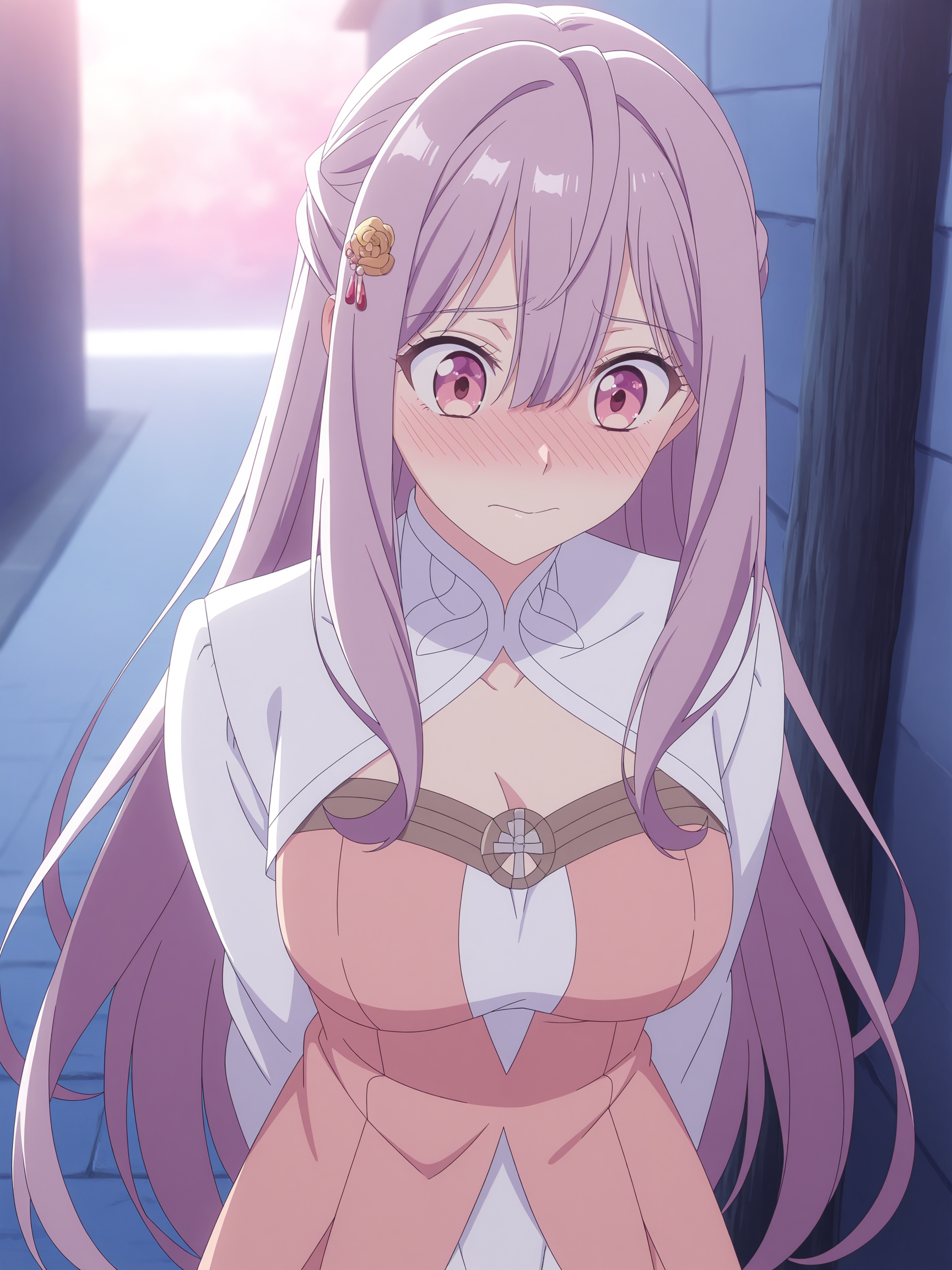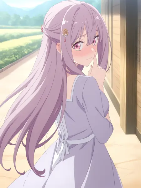1girl, long hair, bangs, pink eyes, hair between eyes, light purple hair, hair ornament, mia_adenauer