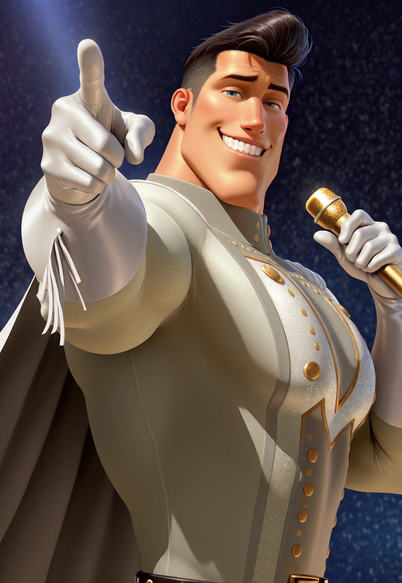 英雄造型:m3tr0,黑发,白色鬓角,蓬松发型,蓝眼睛,