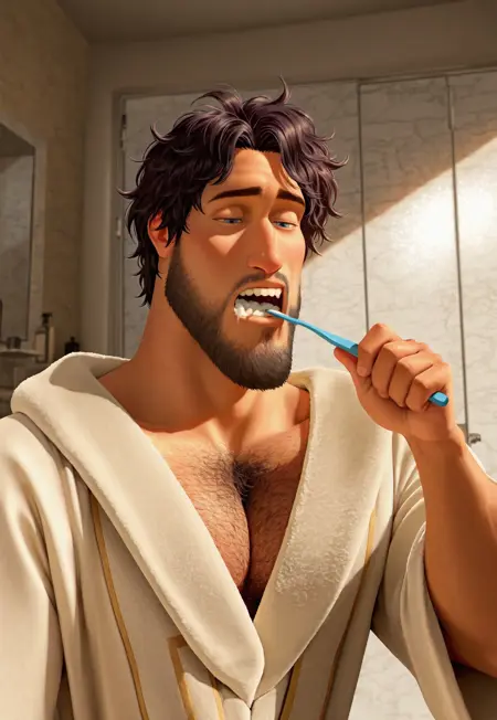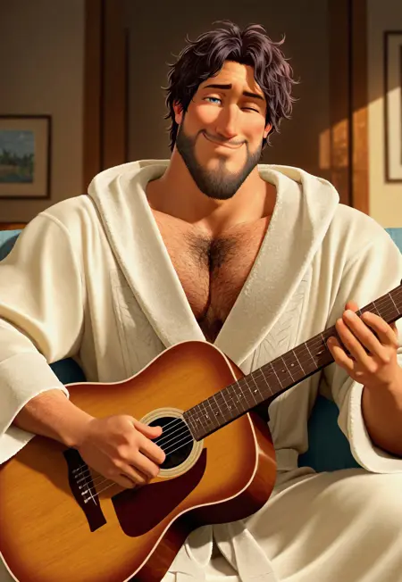 第二种造型:m3tr0,黑发,凌乱发型,胡须,胸毛,