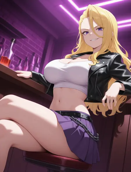 태그 및 원본: Kiria_NYX, 자주색 눈, 눈 사이의 머리카락, 금발, 긴 머리