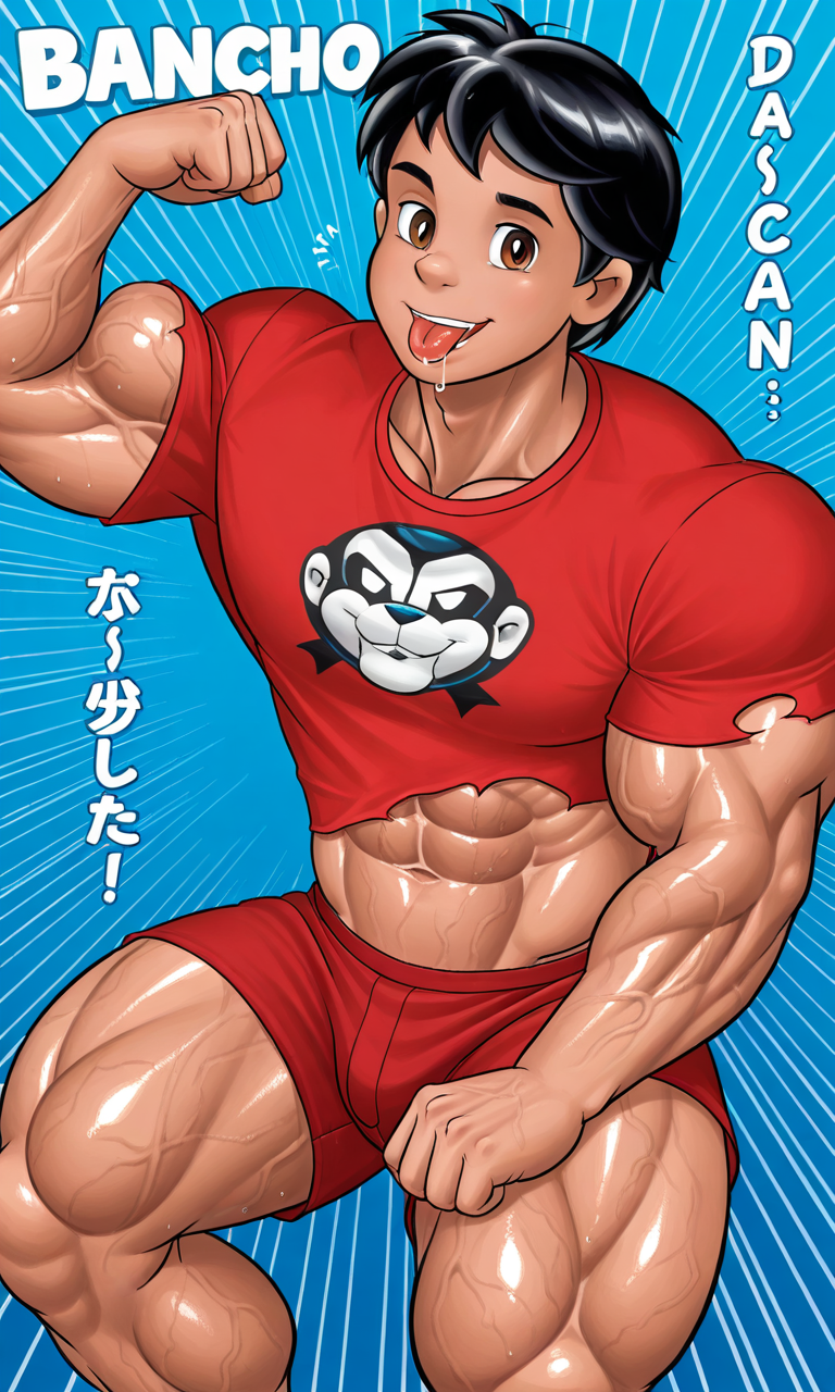 1 boy, Pancho Pantera, muscular, black hair, brown eyes, handsome