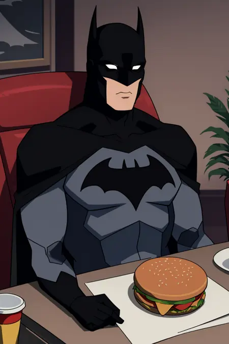 Batman에는 필요한 경우 부정 프롬프트로 노란 눈, 동공을 추가하세요.