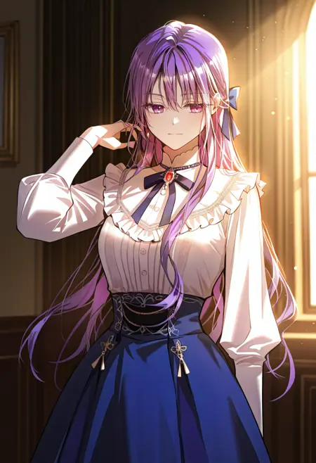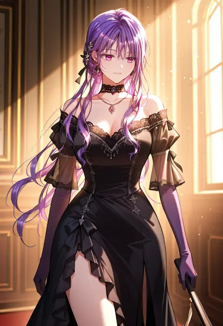 Ciella Labyrinth, purple hair, pink eyes, long hair,