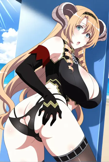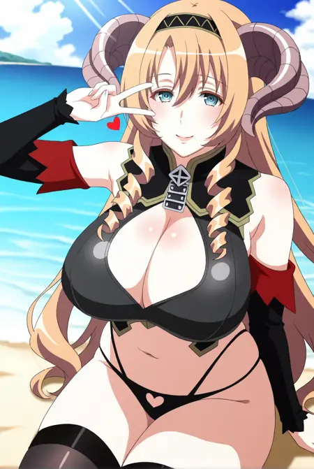 | トレーニングワード | Mammon, very long hair, blue eyes, blonde hair, hair between eyes, drill hair, twin drills, drill sidelocks, large breasts, gloves, bare shoulders, hairband, horns, detached sleeves, black thighhighs, black underwear, clothing cutout, black panties, highleg panties, cleavage cutout, black hairband, demon horns, black sleeves, curled horns, heart pantiesコピーしました! |
