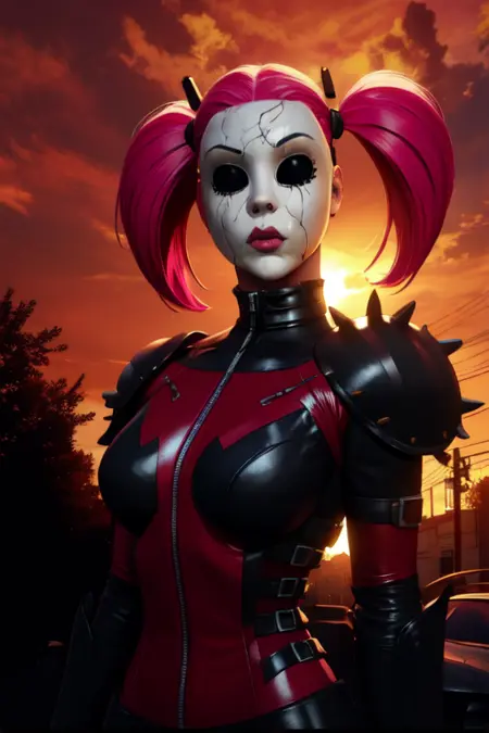 DollFace、玩偶面具或面具、粉发、双马尾,或黑发、黑眼 — 可能有所帮助