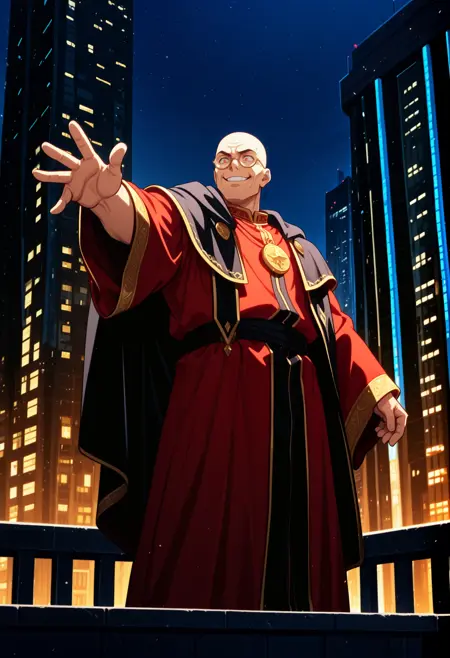 彼の象徴的なローブ姿を再現したい場合は、以下のタグを追加してください。