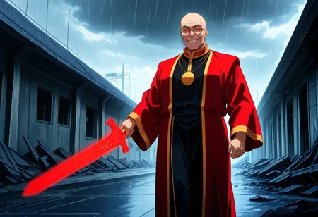 ローブの外見は、データセットの都合上やや不安定になる場合があります。また、彼の剣を持たせたい場合は、 holding sword, holding weapon, long sword, red sword を追加するとより忠実に再現できます。(この場合、武器用補助LoRAを併用することを推奨します)