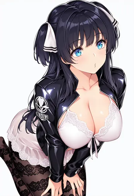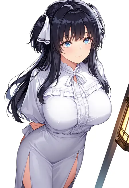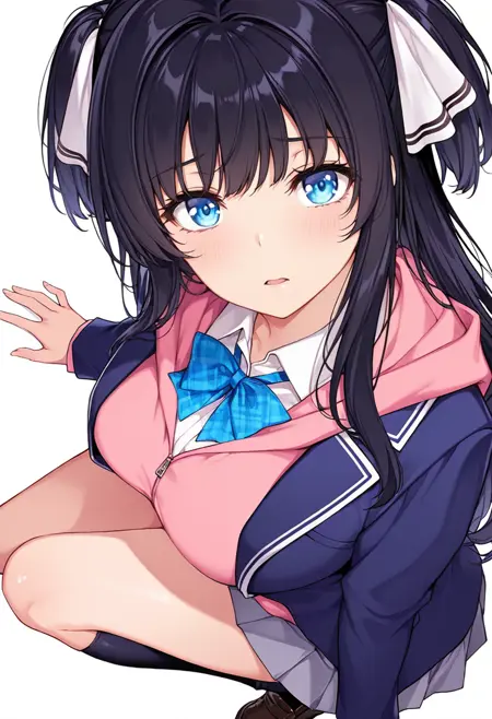 hikari_cnr,黒髪,ロングヘア,サイドアップ,青い目,大きな胸,髪リボン,