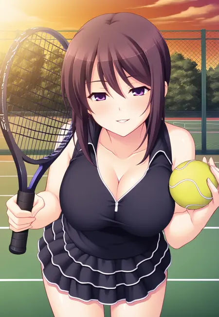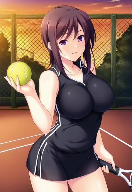 tennis_outfit, tennis uniform, black shirt, black skirt, layered skirt, sleeveless