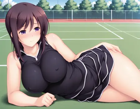 tennis_outfit, tennis uniform, black shirt, black skirt, sleeveless
