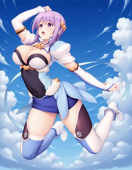 holyrouge, medium hair, purple hair, purple eyes, large breasts
