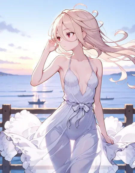 "strapless dress, cape, wrist cuffs, claws, side slit,"