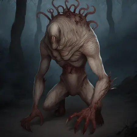 비디오 게임 '백 4 블러드'의 해그. 훈련이 그녀의 '이빨'이 실제로 손가락이고, 입에서 뻗어나오는 여러 팔이라는 사실을 인식하지 못해 아직 완성되지 않았음.
