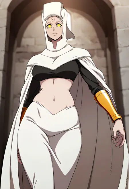 推奨トリガーワード: g0ldff、額のマーク、頭飾り、黄色い目、マント、胸元がカバーされている、長いスカート、naeval、お腹の部分、