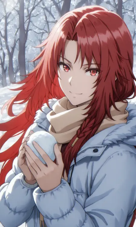 irismidgarmv, 1girl, solo, red hair, red eyes, long hair,