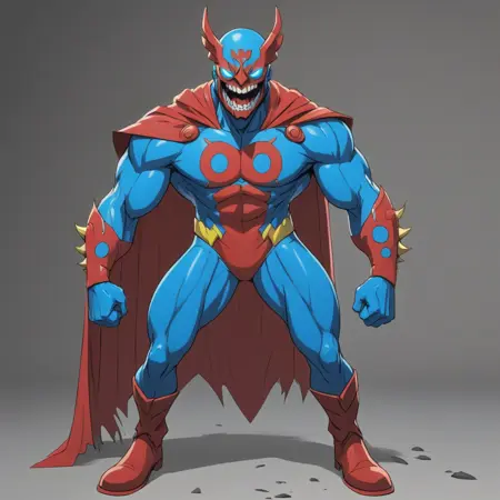 This model is capable of making characters of any genre, but it is most adept at generating characters that involve heroic and villainous motifs.
