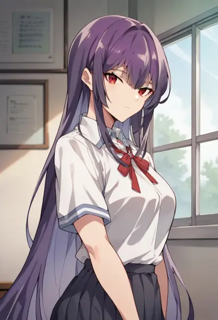 트리거 단어: takamine takane, 긴 머리, 보라색 머리, 붉은 눈
