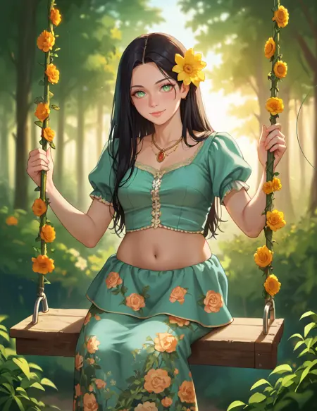 redda hatta, 솔로, 퍼프短袖, 노란 옷, 무늬, 배꼽, 허리,
