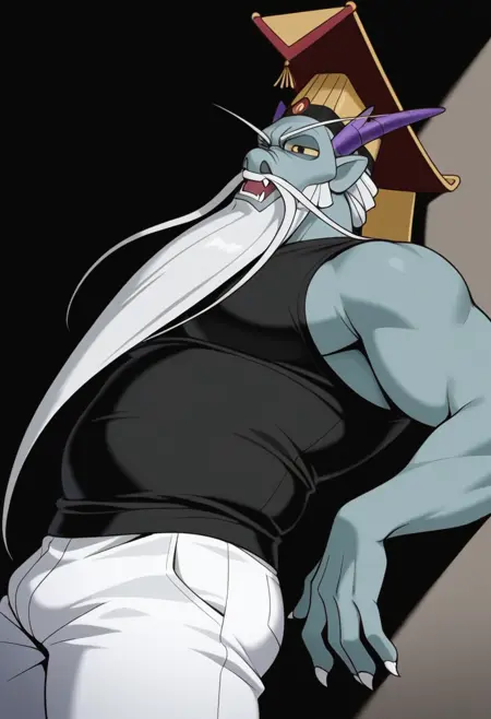 | 训练词汇 | donghailongwang, old, eastern dragon, furry, blue skin, purple horns, yellow eyes, white hair, facial hair, very long beard, very long mustache, very long eyebrows, whiskers, fangs, claws已复制! ceremonial hat, chinese hat, hat jewel已复制! chinese clothes, yellow robe, black trim, wide sleeves, long sleeves, red cape, red sash, front cloth已复制! |