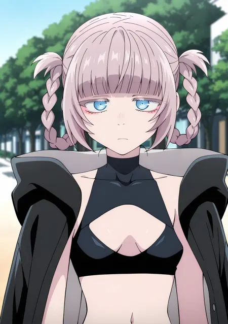 | Trained Words | Nazuna, blue eyes, hair rings, braid, bangs, blunt bangs, grey hair, twin braids, short hair, sidelocks, ringed eyes, colored eyelashesCopied! thighhighs, black thighhighs, sleeves past wrists, long sleeves, short shorts, blue shorts, jacket, black coat, thigh boots, black footwear, black shorts, denim, black jacket,Copied! black shorts, black thighhighs, crop top, bare shoulders, sleeveless, midriff, short shorts, shirt, clothing cutout, sleeveless turtleneck, black shirt, sleeveless shirt, black belt, denimCopied! thighhighs, navel, cape, midriff, cleavage, cloak, bra, groin, short shorts, black bra, underwear, sleeveless, denim, stomach, black cape, small breastsCopied! nurse, white dress, nurse cap,Copied! glasses, shirt, dress, collarbone, short sleeves, white shirt, bra strap, skirt, black skirt, Copied! |