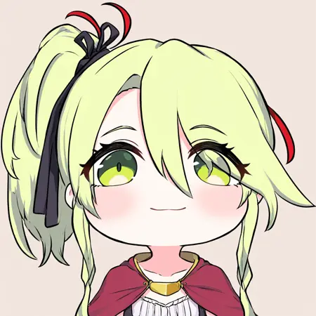 deathpolcabody,green eyes,green hair,side ponytail,hair ribbon