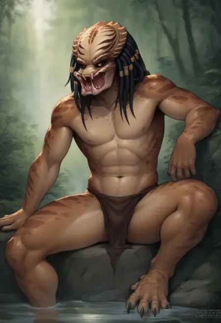 Yautja 외계인. 약 18장의 이미지를 사용한 첫 번째 LoRA 시도. 턱부분이 자주 어려운데, "teeth"라는 단어를 포함시키면 도움이 됩니다. 때로는 모델(NovaFurryXL)이 Yautja에게 꼬리를 생성하는데, 이 경우 "humanoid"를 포함시키면 이를 최소화할 수 있습니다.