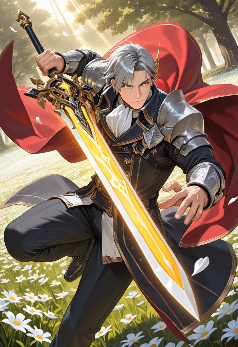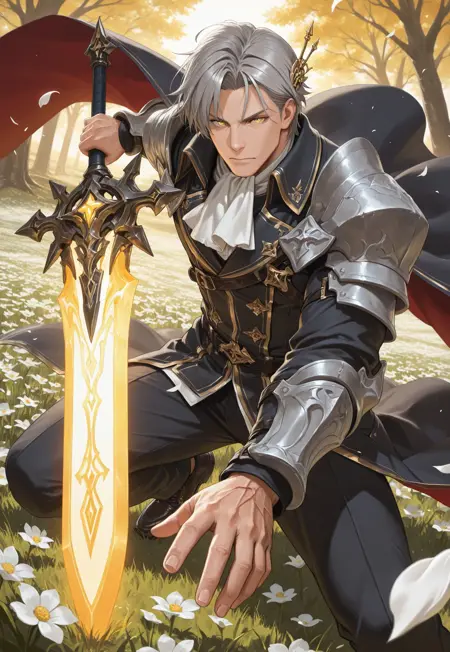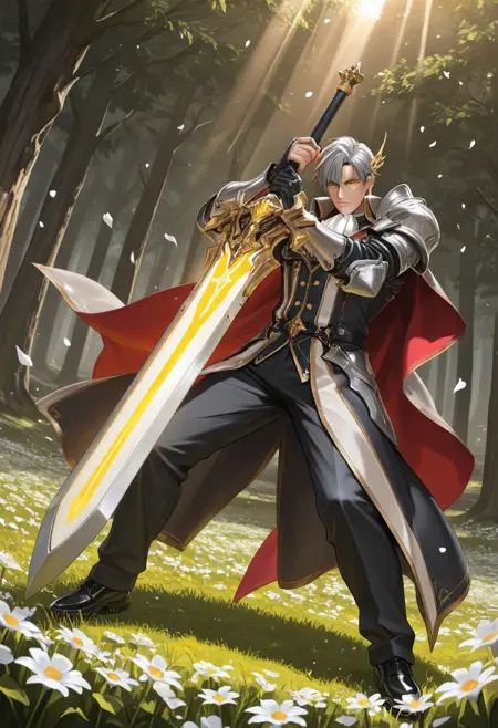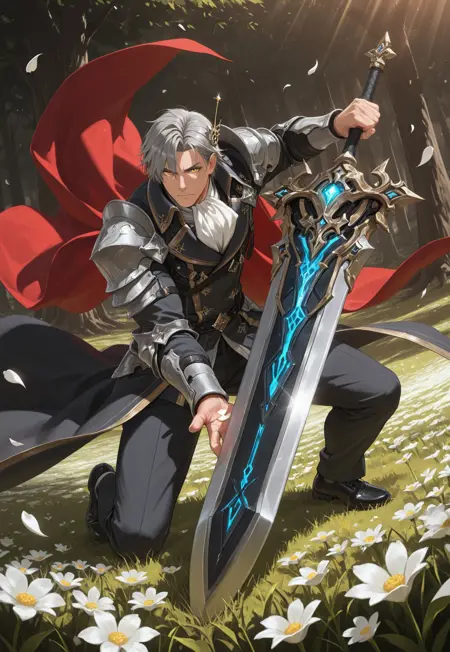 armor, coat, ascot, cape, pants, shoes, greatsword,