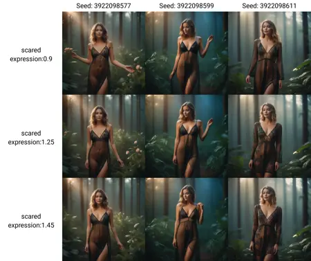 映画的外観の複合的改善、被写体の分離(被写界深度、渦巻きボケなど)、風景のムード(霧、炎/煙の壮大さとリアリズムなど)、解剖学的表現(より良いポーズ、恥ずかしがり、顔/体の表情など)。