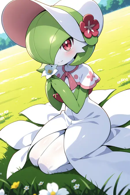 flower, hat, capelet, white headwear, red flower, clothed pokemon,