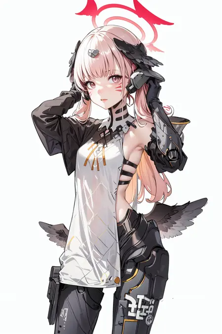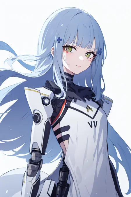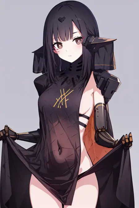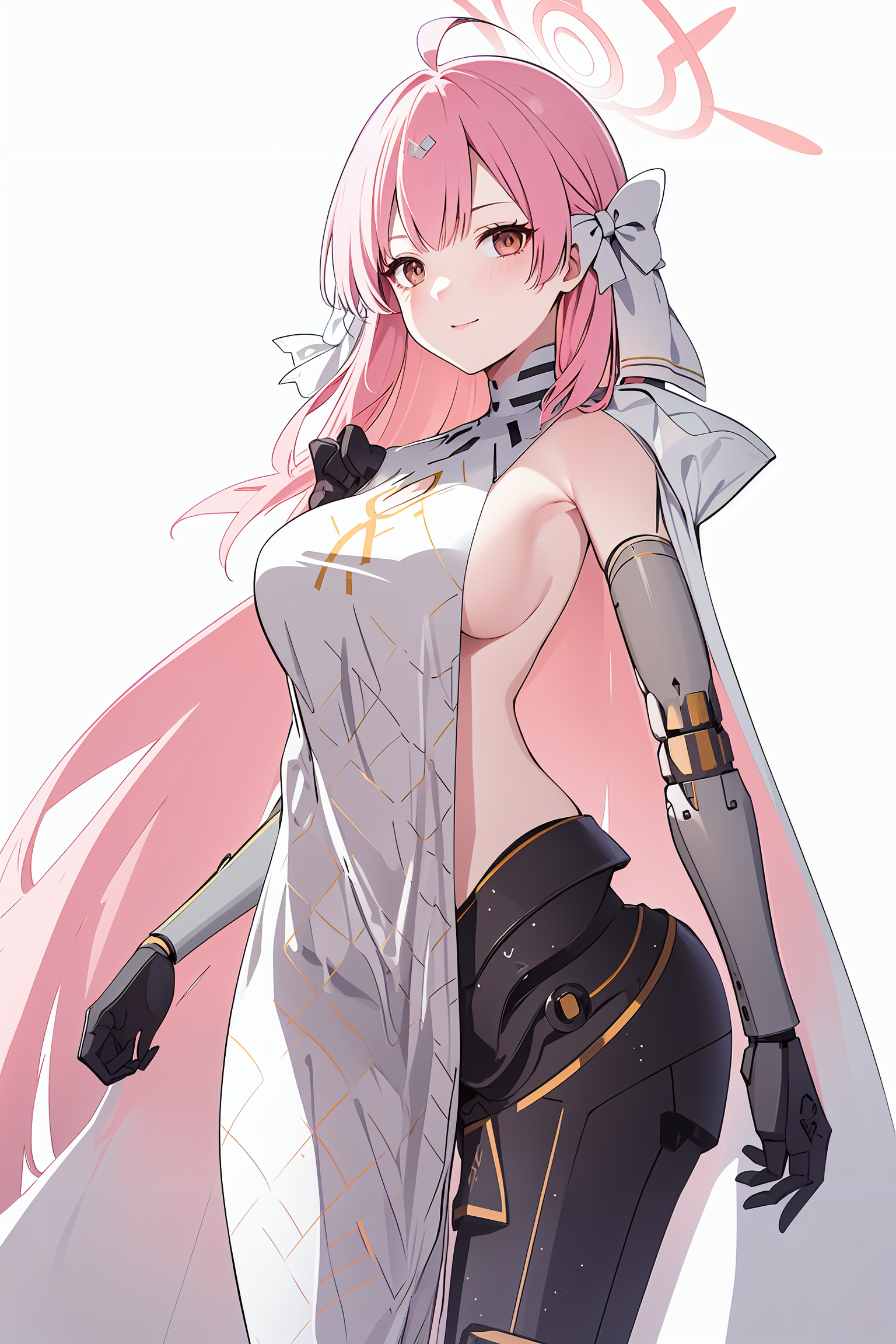 The feature U could adjust by prompts such as color+dress,mechanical arms, mechanical legs, sideboob, facial mark, eyepatch.
