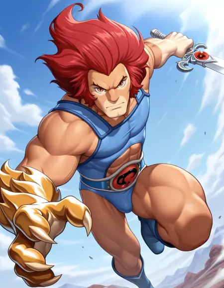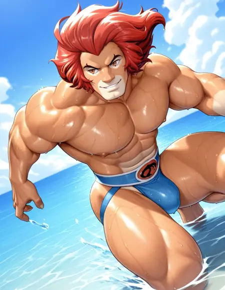 Lion-O-ARAI-IL, 1boy, male focus, muscular male, red hair, brown eyes