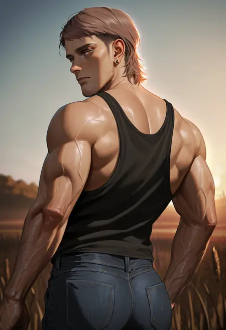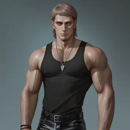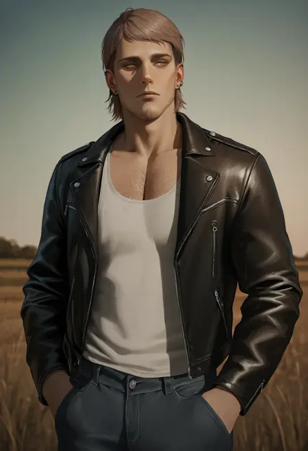 I suggest in the prompt to add: "stubble, brown hair, mullet hair"