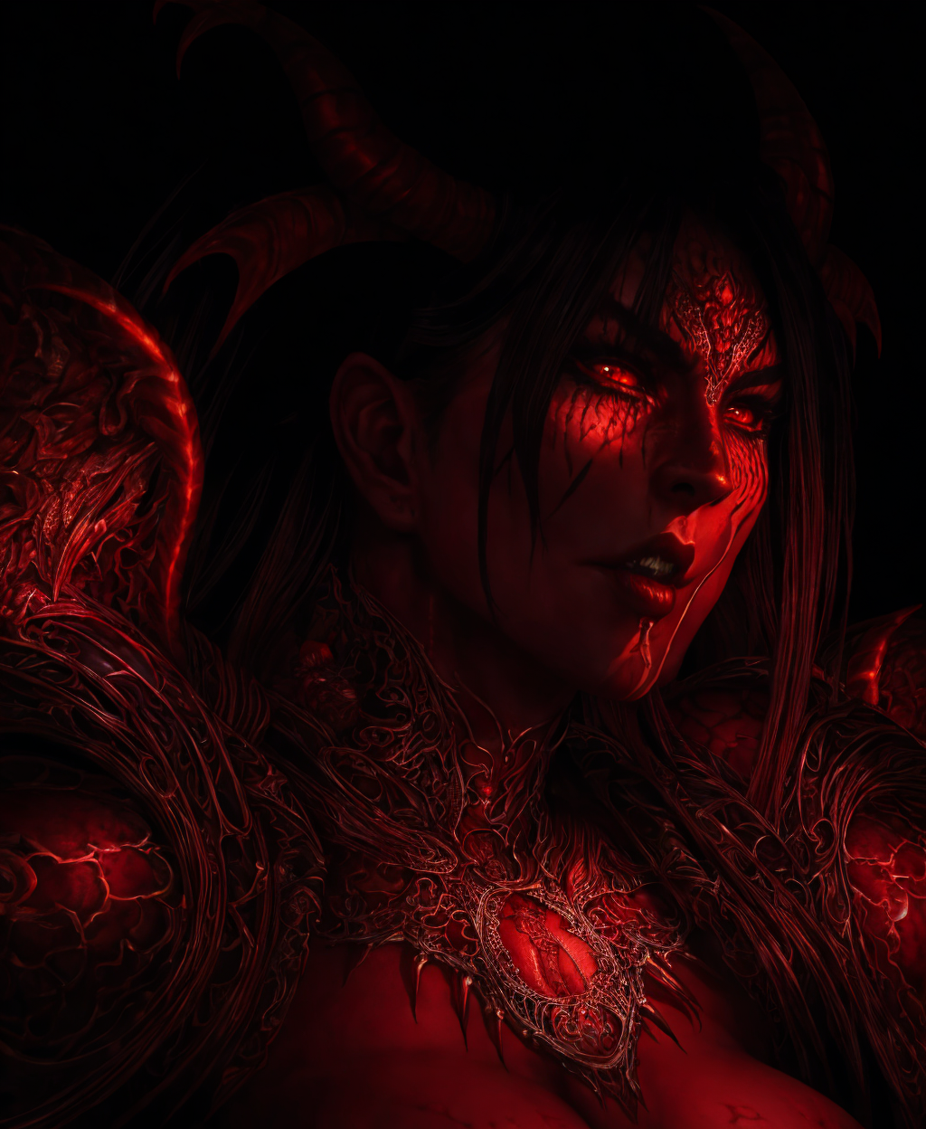 “Demonic”可作为触发词,能有效生成类似“被诅咒军团”中出现的地狱生物。