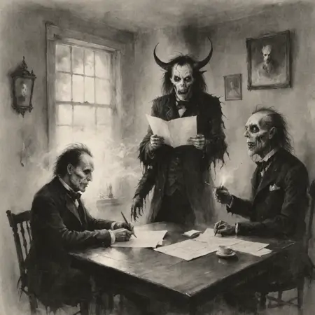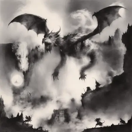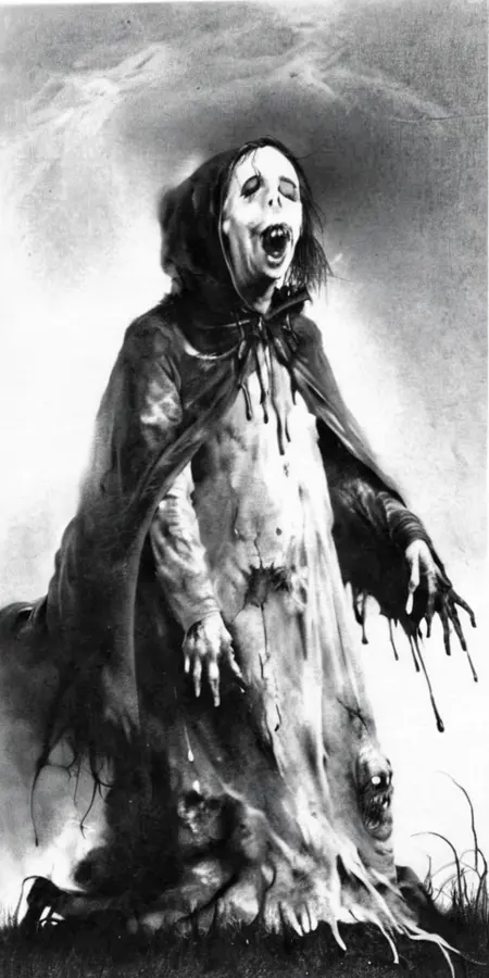 推荐提示:"Stephen Gammell (artist), horror, vines, cracks, decay, fog"