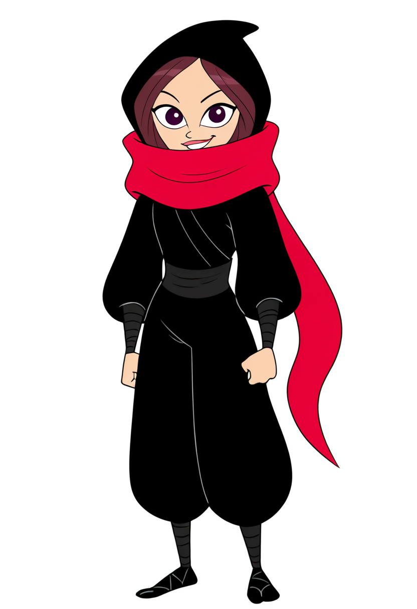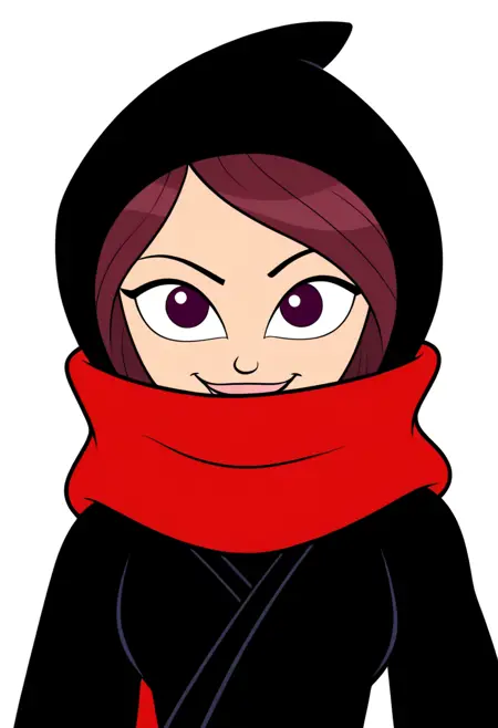 ニンジャプロンプト:ninja, red scarf, hood, covered mouth