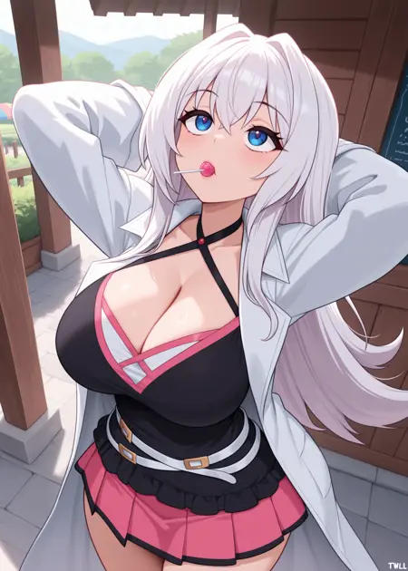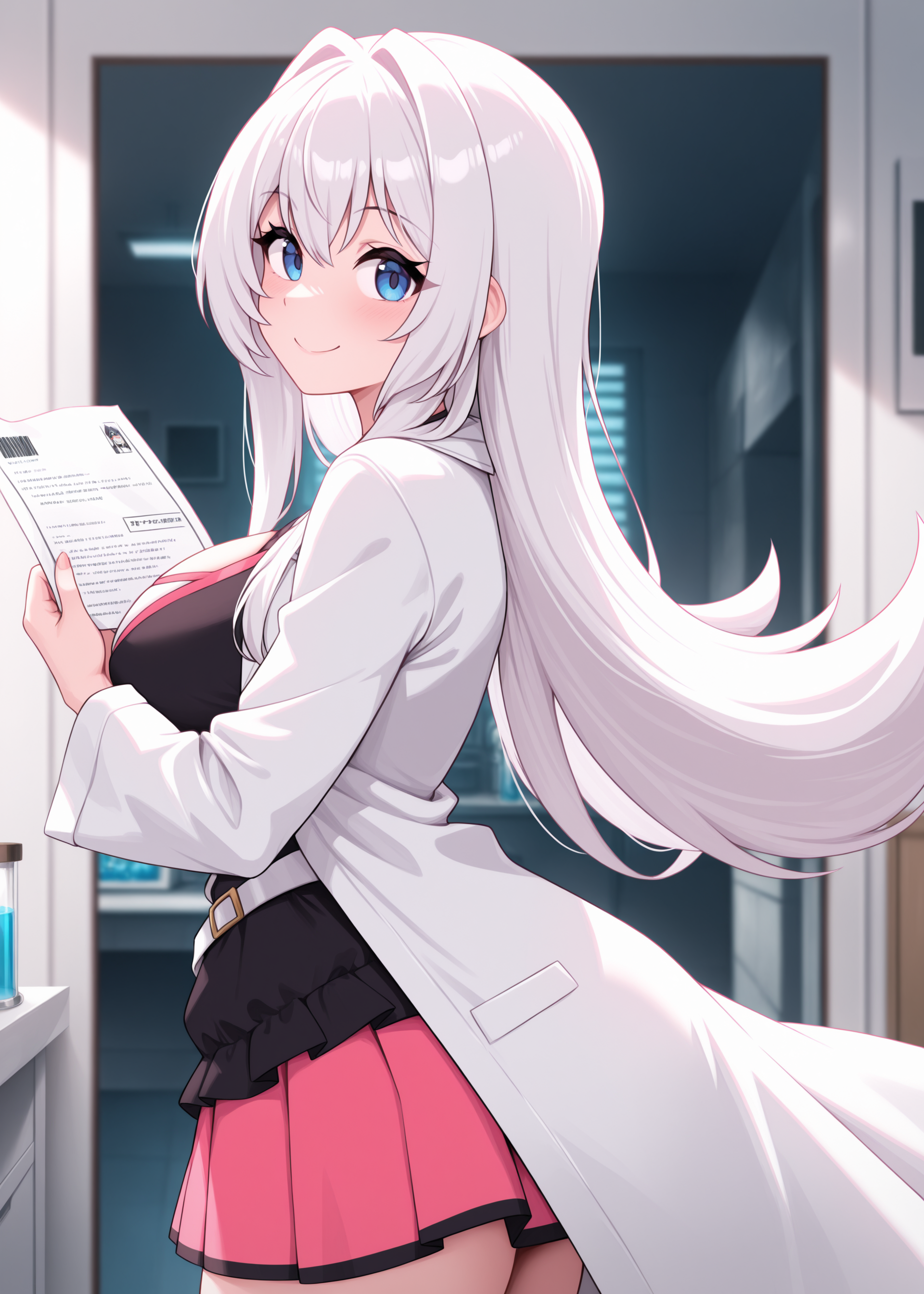 白色实验服,黑色短裙,粉红色裙子,百褶裙,黑色靴子