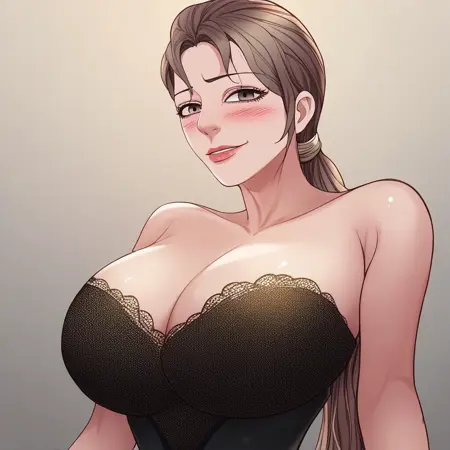 (( lora:heo_jeong-hee:1 , heo_jeong-hee, 漂亮的棕色眼睛,清澈的眼睛,明亮的瞳孔,美丽的眼睛,漂亮的浅棕色头发,漂亮的低长马尾辫,巨大而蓬松的乳房,纤细的腰,宽大的臀部,美丽的肌肤,自然美,非凡美丽的女性,有吸引力的女性,超性感女性,欲望的身体,性感且充满诱惑的露骨躯体,性感的体态,丰腴的身体,性感美艳,))