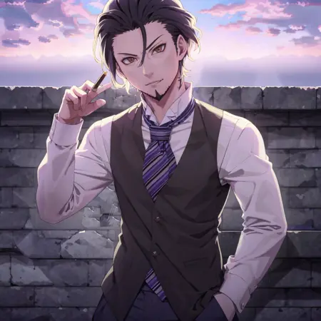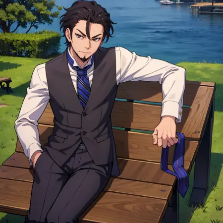 他的日常装扮为:“背心、领带、裤子、正式、衬衫”