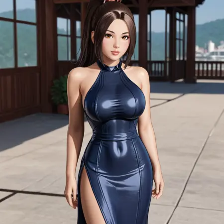 • 过场动画风格触发词:MaiCOTWCutscene, 1girl, 大胸, shiranui mai, 乳沟, 黑色手套, 马尾, 棕发, 肚脐, 露脐, 黑色裤子, 长发, 棕眼, 腰带, 长袖, 夹克, 西部镜头