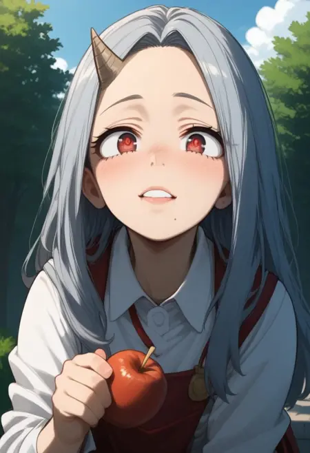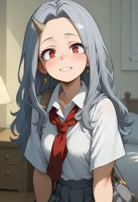 Eri, lora:Eri-v:1, Eri, 긴 머리, 빨간 눈, 회색 머리, 뿔, 하나의 뿔, 이마에 작은 뿔, 오른쪽에 뿔, 작은 체격, 낮은 키, 평평한 가슴