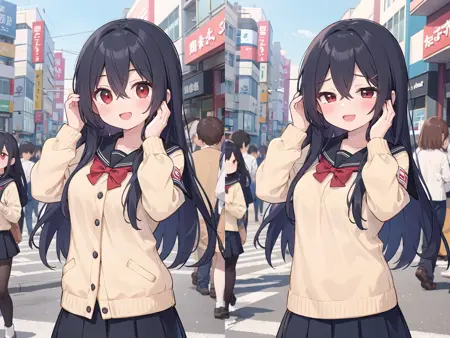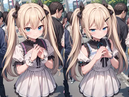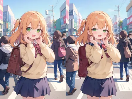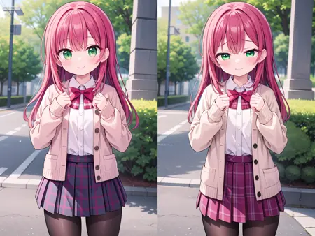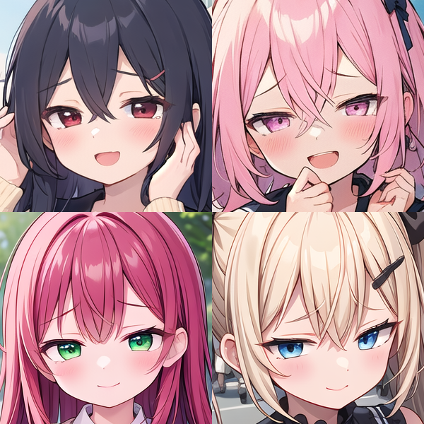 複数タイプを同時に適用したり、アイコレクション(HuggingFaceで公開中) と同時に適用することで眼の形をさらにカスタマイズすることもできます。この場合、それぞれのLoRAの強度は応分(2つなら0.5ずつにするなど)してください。