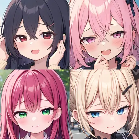 可同时使用多种类型,或与HuggingFace发布的Eye Collection系列结合,进一步自定义眼部形状。若同时使用多个眼部LoRA,请将各自的强度减半(如两个同时使用时,设为0.5左右)。