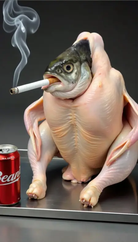이 캐릭터는 Pump.fun Solana 메모 코인에서 발견했습니다. 이후 구글로 검색하고 이미지 탭을 클릭했습니다. 이 LoRA를 사용할 때 아이디어를 얻기 위해 온라인에서 "smoking chicken fish"로 검색해 보세요. 제 다른 일부 LoRA들도 메모코인 이미지로 학습되었습니다.