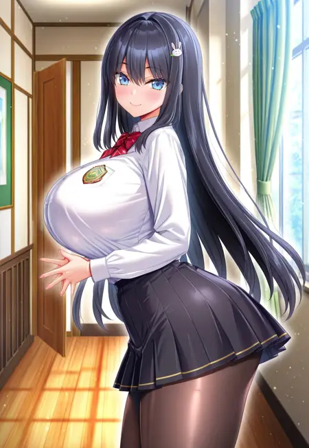 태그: usami runa, 검은 머리, 긴 머리, 토끼 모양 머리 장식, 파란 눈, 거대한 가슴, 곡선미
